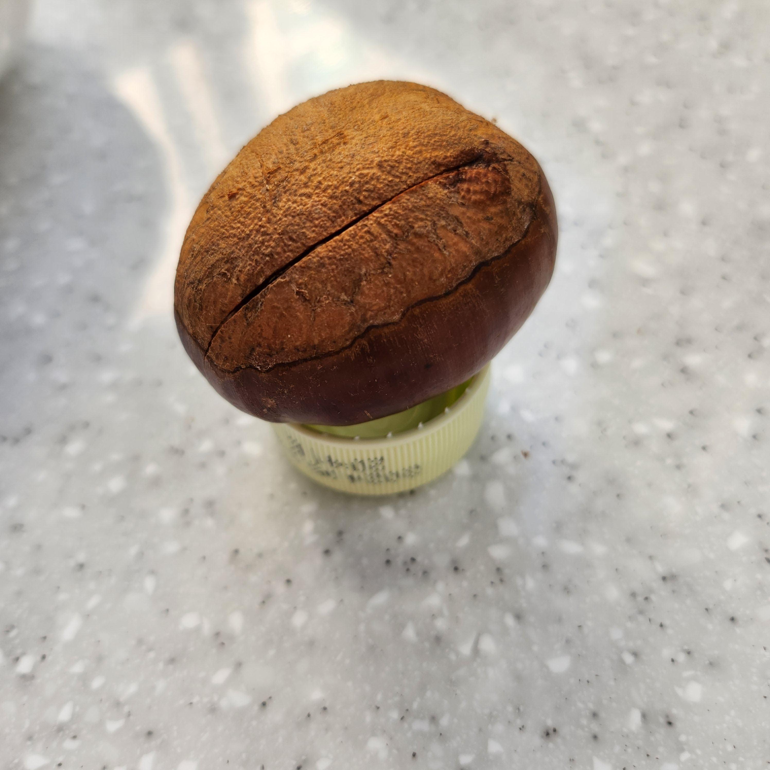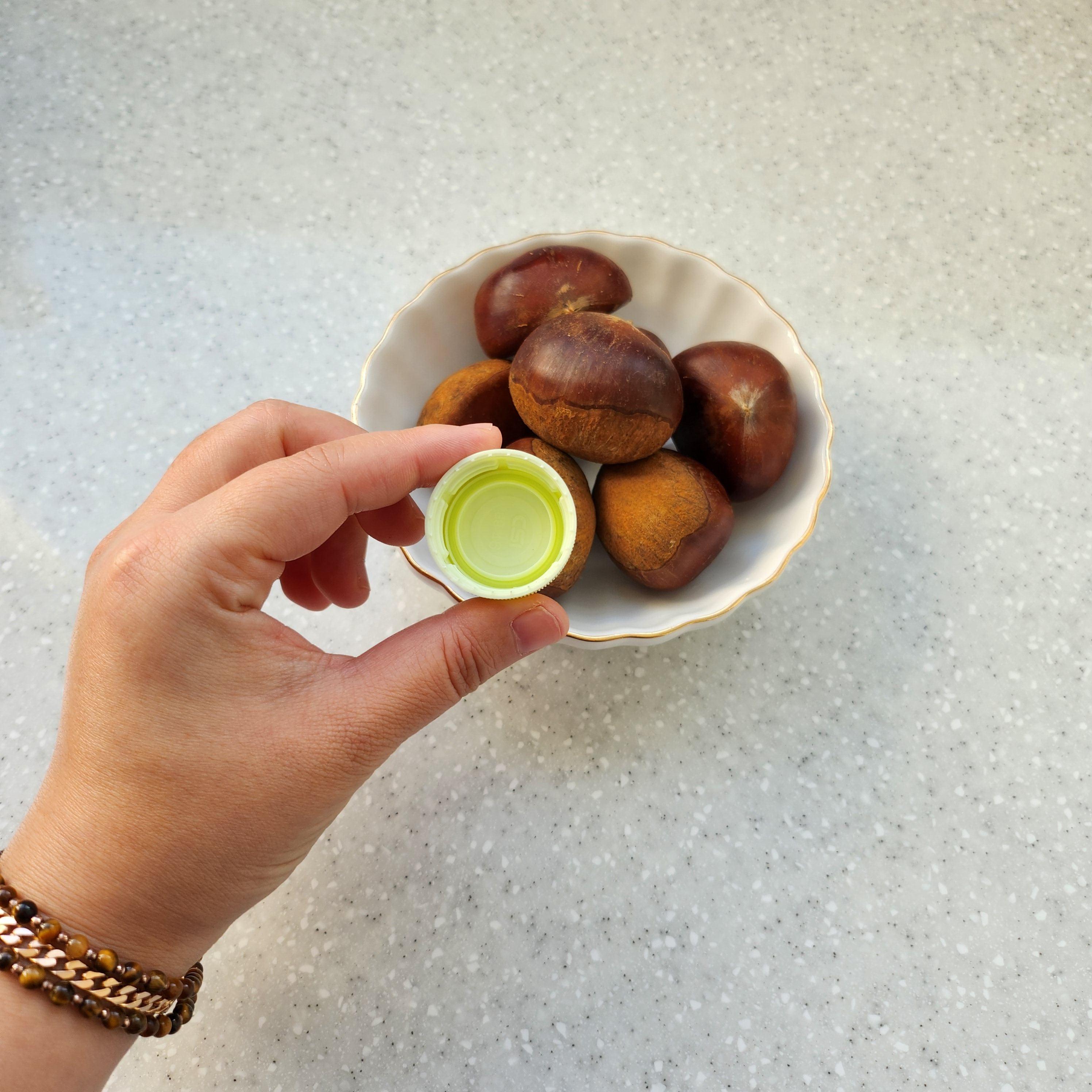 밤을 플라스틱 병뚜껑에